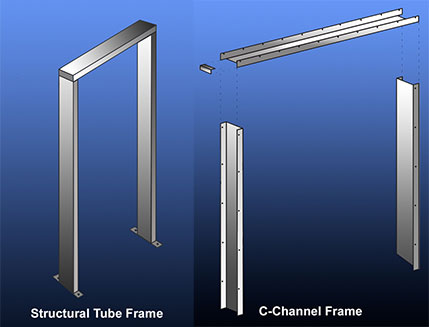 Structural Steel Tube Frames are custom manufactured of tubular steel to fit your door opening. Designed for heavy duty doors in industrial type of applications or applications where the wall cannot support the door.